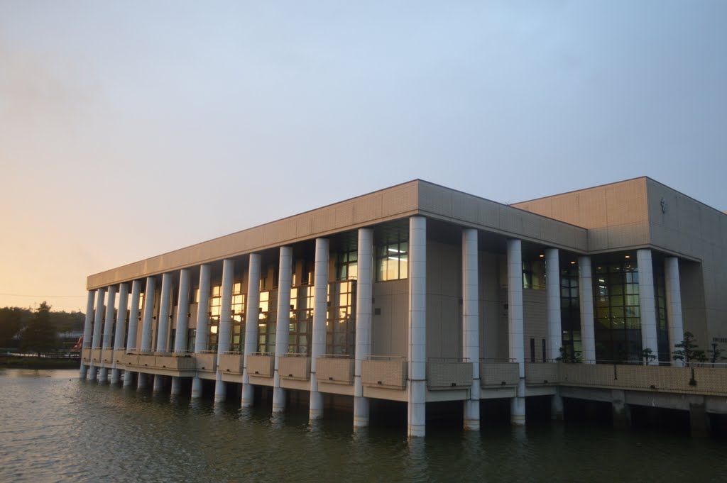 一言コメント:アサリ池の上に建つ図書館。貸出し返却の窓口は広く作られている。必要な資料もコンパクトにまとまったちょうどいい図書館です。