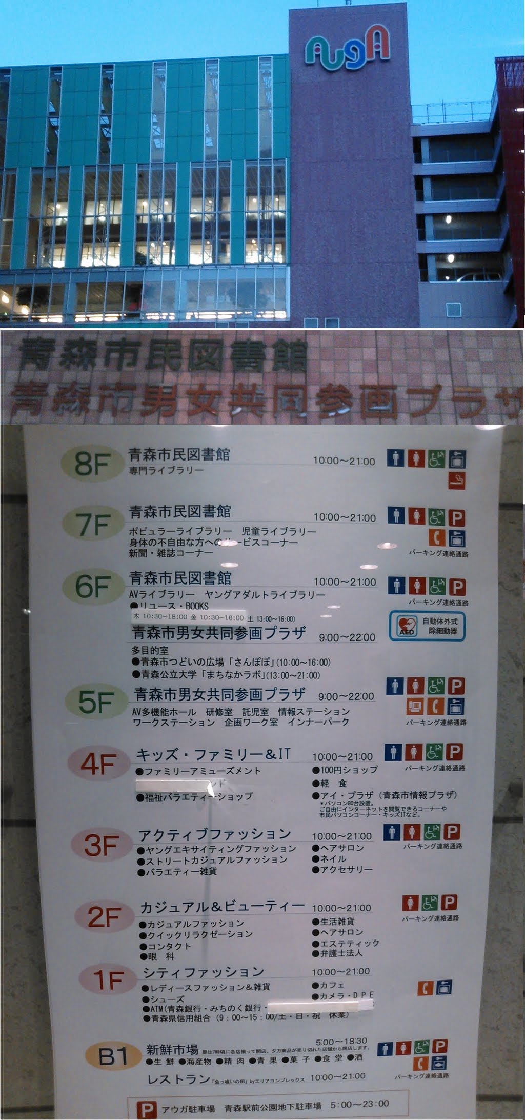 一言コメント:7階ポピュラーライブラリーで「淡谷文庫企画展」実施中。展示図書は「漬物コーナー」「秋紅葉祭」「秋山菜祭」。夜9時まで開館。下の階はファッションショップやゲームセンターや海鮮市場。