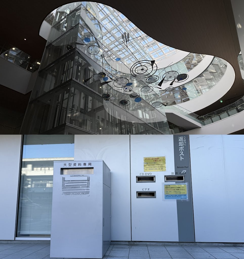 一言コメント:展示は、高崎フィルムコミッション2024。岩崎書店創業90周年。受験・職業。旬の本。モビールは兒玉慎憲「光の雫」