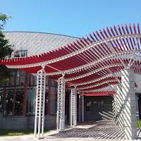 一言コメント:ユニークなデザインの建物。居心地よさそうな館内。