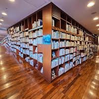 一言コメント:複合施設内の図書館。新居千秋の設計。リアス式海岸をイメージしたという建物は見る者を圧巻します。図書館内は幅員にそれほど余裕のないスロープ傾斜が多いのです。隠れ家的で居心地が良いです。