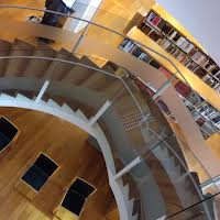 一言コメント:美術館や劇場や平安神宮が並ぶ文教地区にあります。螺旋階段を下りて広い地下の書架と閲覧席のフロアに降りていくのが素敵。