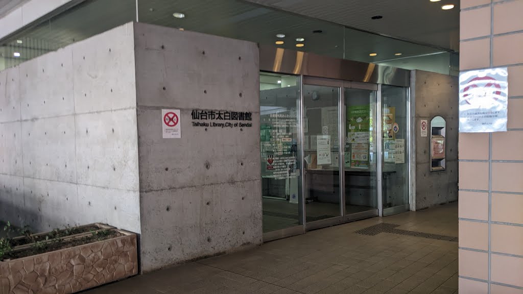 一言コメント:長町駅からすぐ近く。1階は図書コーナーで、地下1階が雑誌と視聴覚コーナー。カーペットの床に木製の棚で落ち着いた雰囲気。Wifi,PC利用席は無し。