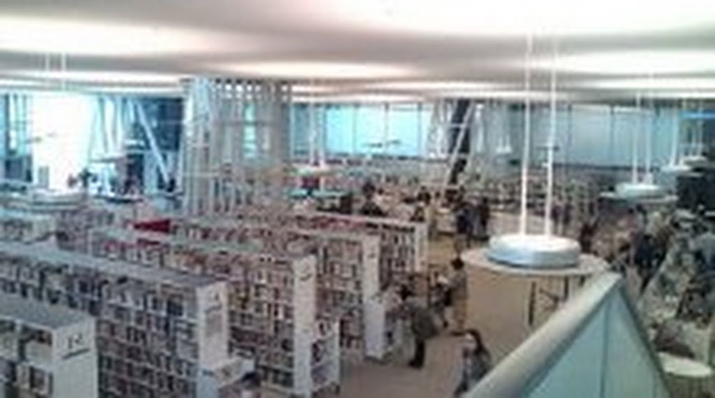 一言コメント:地震が来たときの避難サインが書架に示されていたのが印象的でした。メディアテークと共に、中心部を代表する施設です。