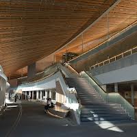 一言コメント:木材がふんだんに使われた居心地良さそうな図書館。若者がたくさんいた。