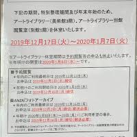 一言コメント:図書展示は「改元:時を計り、それを改める」「国立新美術館 掲載資料」「ボルタンスキー関連図書カタログ」「描かれた怪異~幽霊・妖怪・鬼~」「ウィーン・モダン クリムト、シーレ世紀末への道 図書カタログ」