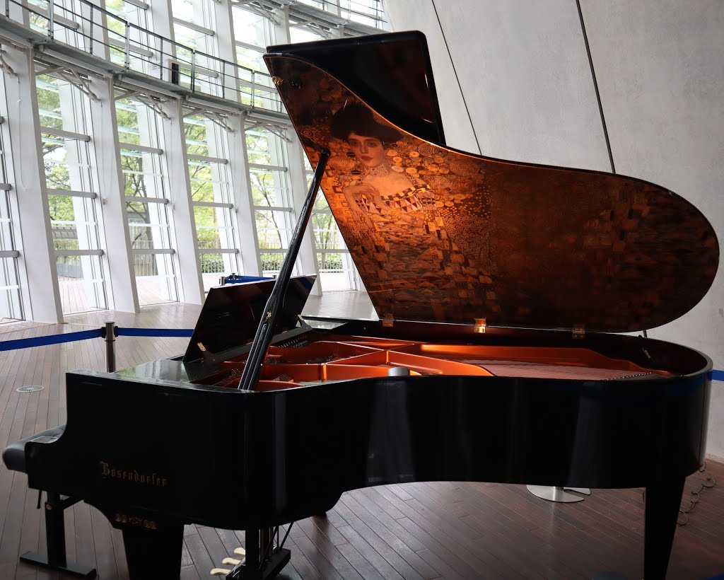 一言コメント:1階に「グスタフ・クリムト ベーゼンドルファーアーティストシリーズ」のグランドピアノが展示してあった。