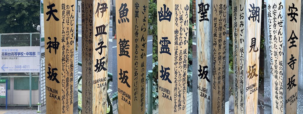 一言コメント:展示は、戦後80年〜いま、考える平和〜。食中毒を予防しよう。平和をつなぐ。戦争と芸術。ボクニキミニ。夏のほん。港区を刻む 東海大附属高中美術部版画展。写真は近所の坂道、港区坂多し。