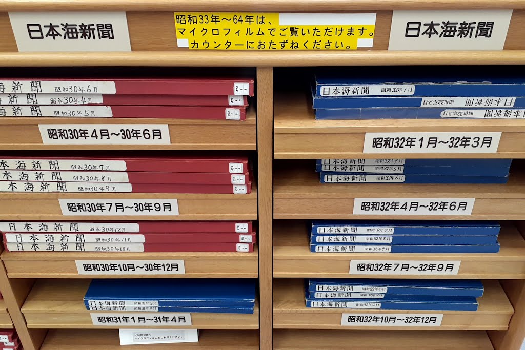 一言コメント:戦前から戦後にかけての『鳥取新報』や『日本海新聞』が開架に置かれてて、映画館の開館記事や開館広告などを探す調査に役立った。