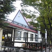 一言コメント:「お薦めの本」にはいろいろなジャンルが沢山並んでいました。ウッドデッキのテラス席もあり。