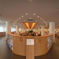 一言コメント:新しいと所蔵の書籍は多くなくても、配架の関係もあり、素晴らしく見える。同じ建物にはスーパーや医院もあった。