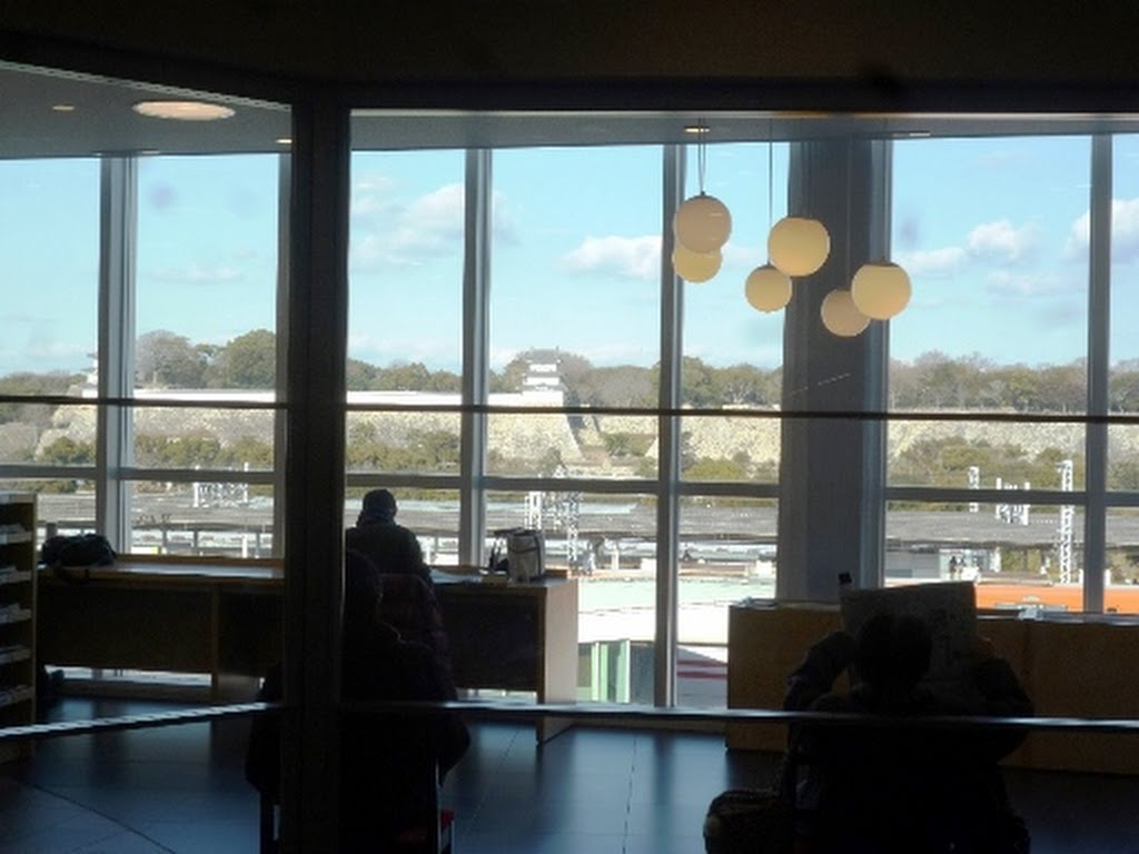 4階にあり明石城跡や明石駅が目の前です。写真は図書館外の廊下から撮ったもの。