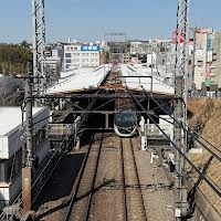 展示は、リラックス&リフレッシュ。はじまるよったら はじまるよ!〜しんせいかつ・あたらしいこと〜 だいしょうぶだよ! 写真は図書館前の跨線橋から最寄りのあざみ野駅。近く見えるが高低差あり。