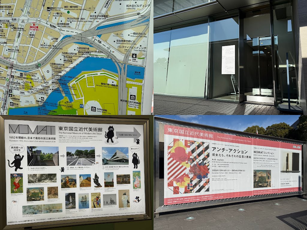 本日定休日。美術館の企画展は、アンチ・アクション 彼女たち、それぞれの応答と挑戦。所蔵作品展 MOMATコレクション。没後30年 榎倉康二。美術館と図書館の休館日や企画展示が連動すると嬉しい。