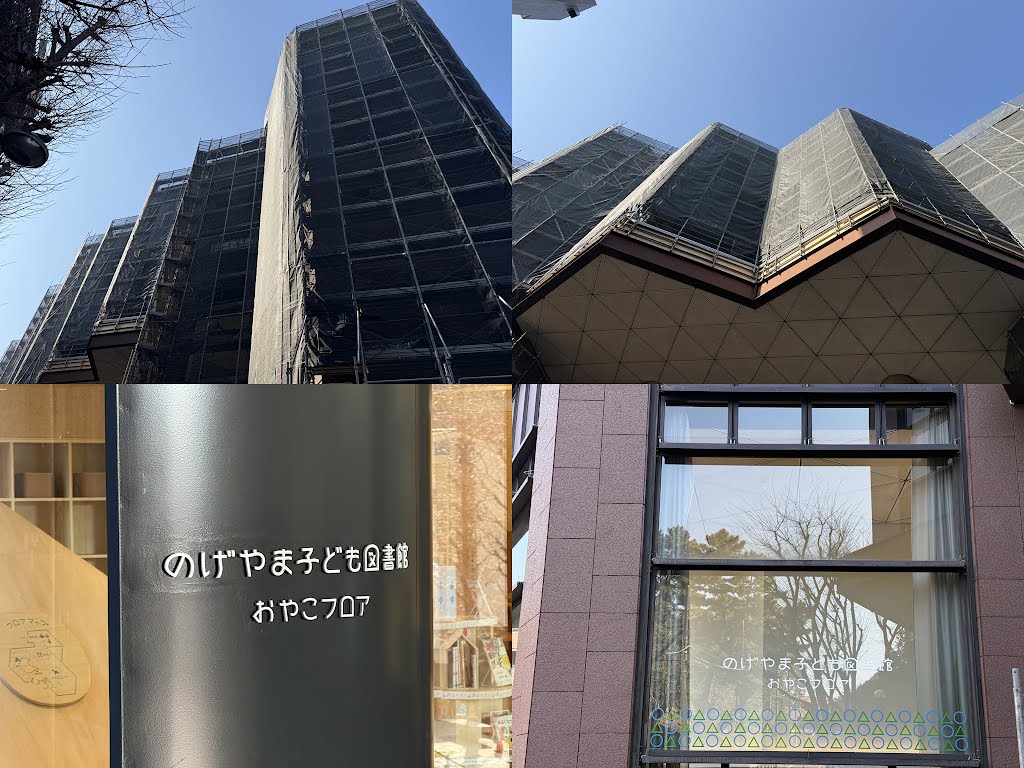 図書館システム更新のため、しばらく休館。図書返却ポストはペデストリアンデッキの下、1階正面玄関横。