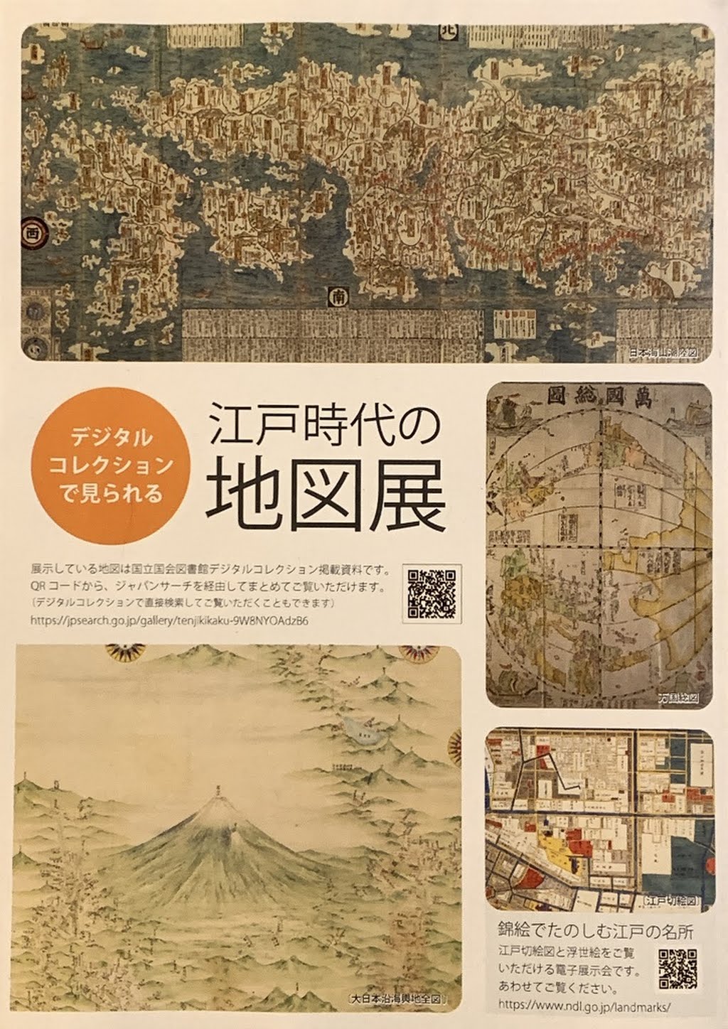 展示は「江戸時代の地図展」。加藤まことコレクションは「帖佐美行展 彫金の去声」「どろ絵ガラス絵展」「トレチャコフ・プーシキン2大美術館展」「名画との対話 トレチャコフ美術館名作展」「Rouault」他