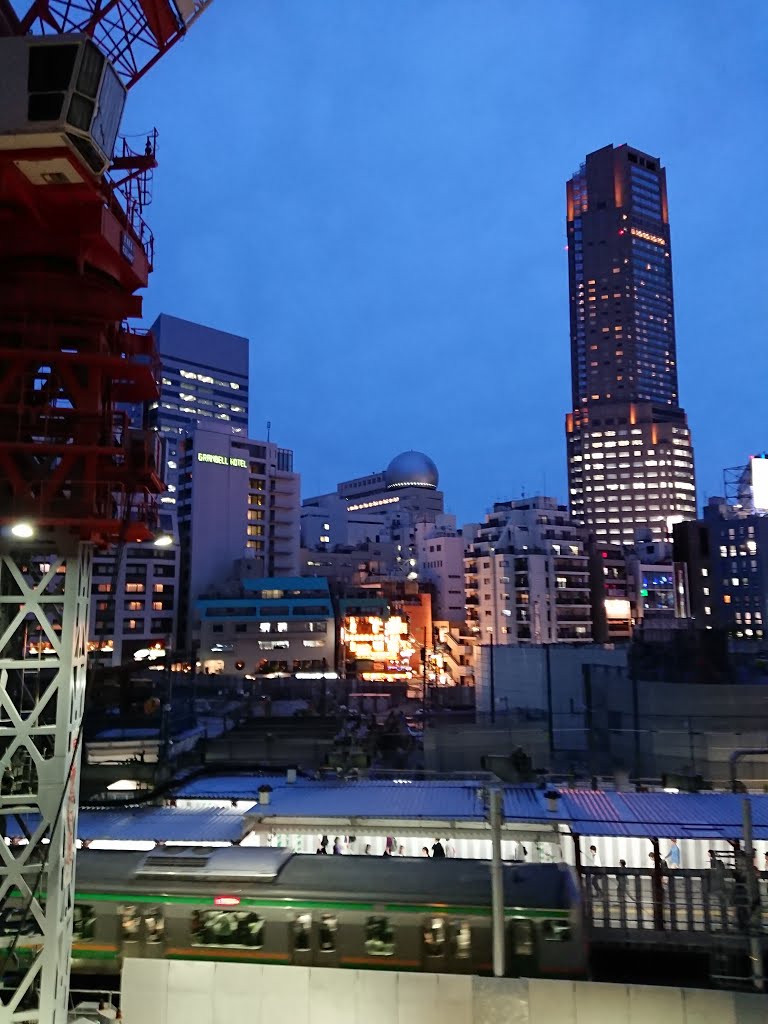 渋谷駅桜丘口地区市街地再開発でビルが取り壊され山手線から渋谷区文化総合センター大和田のプラネタリウムドームが再び見えてきた。
