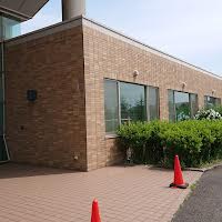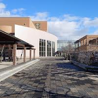スタジオ、会議室、キッチンなども入った複合文化施設の一角にあります。駐車場も広く、バス停もあり便利そう。